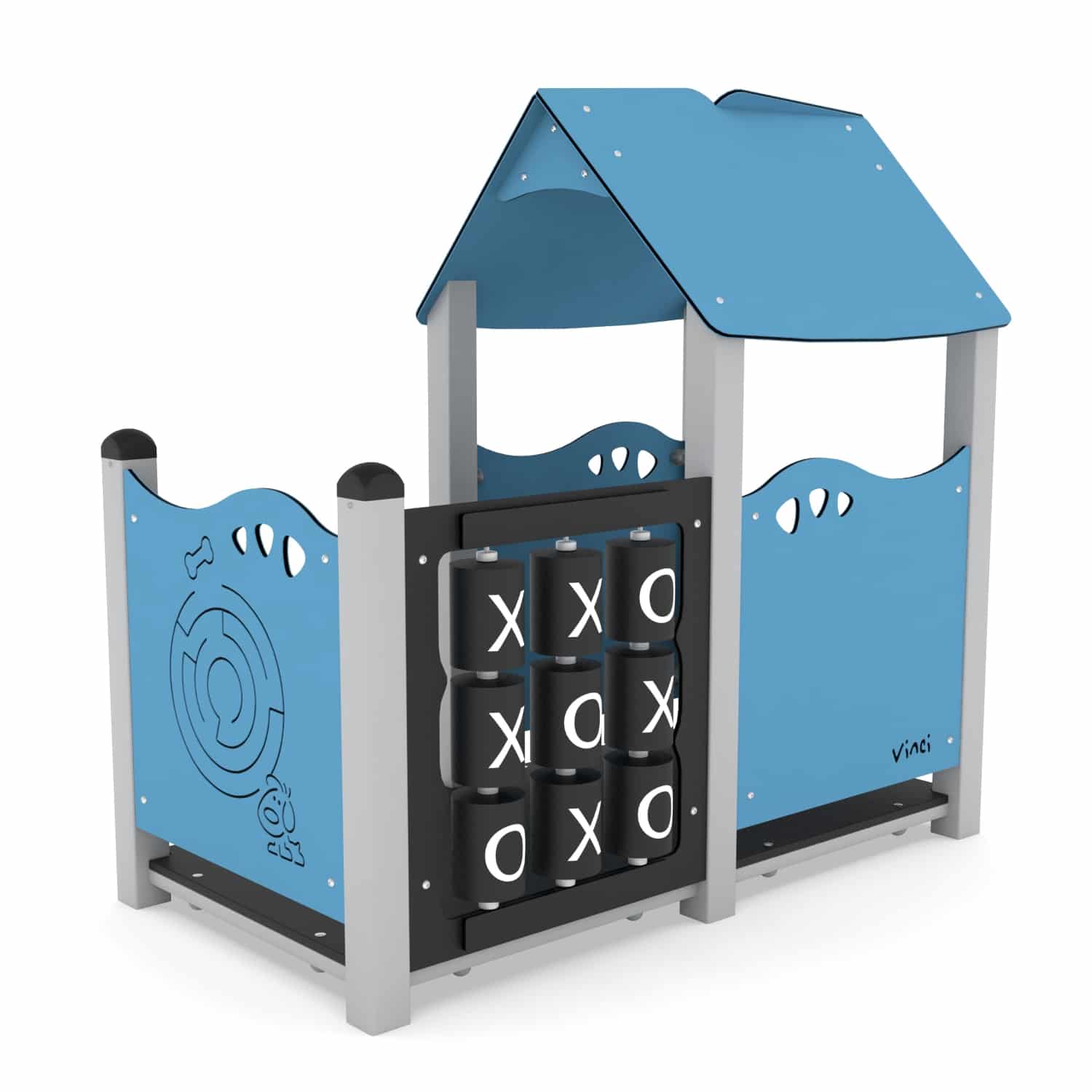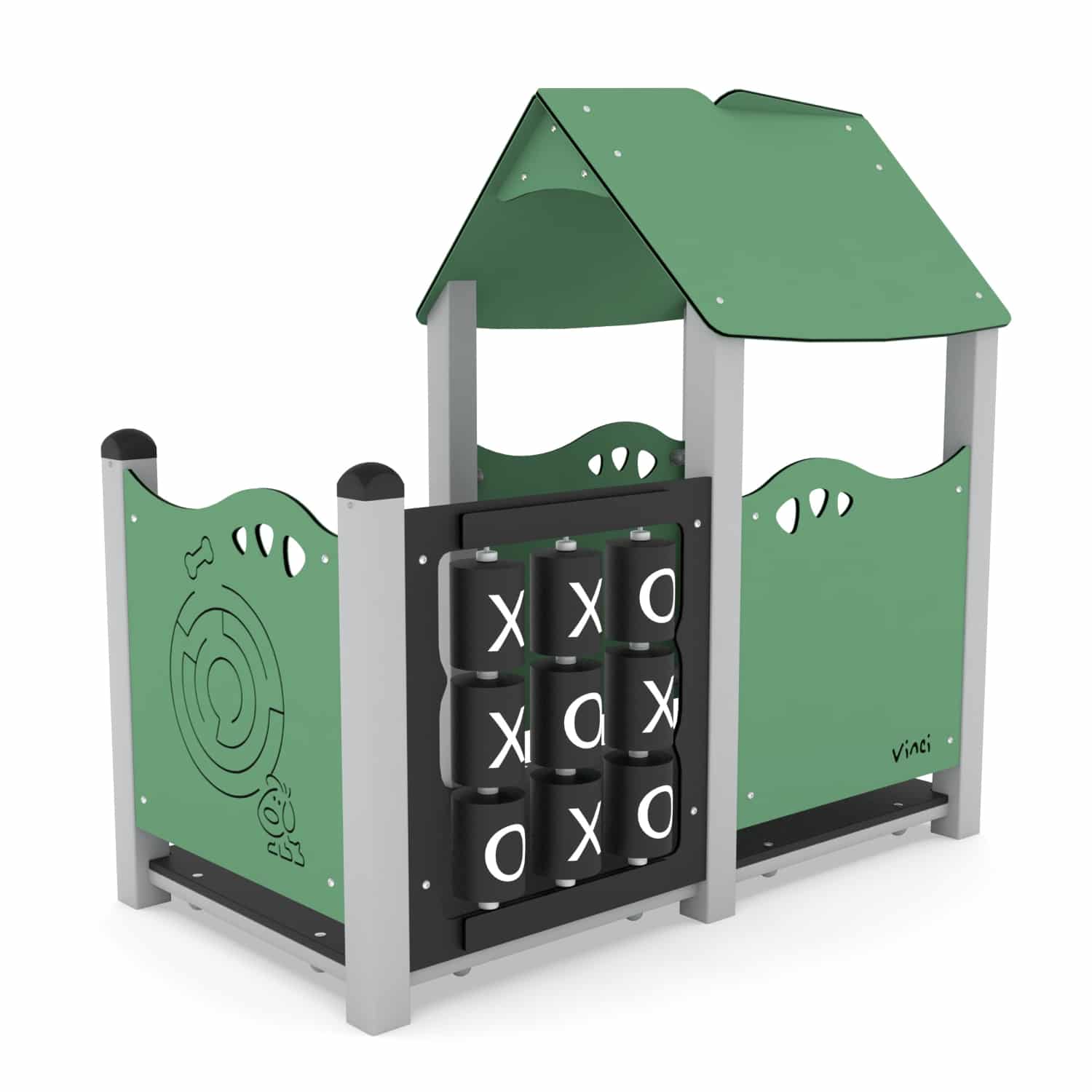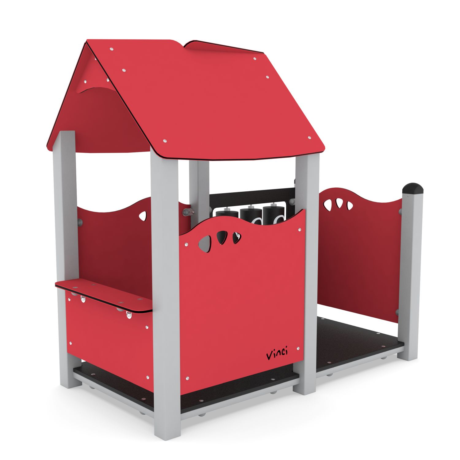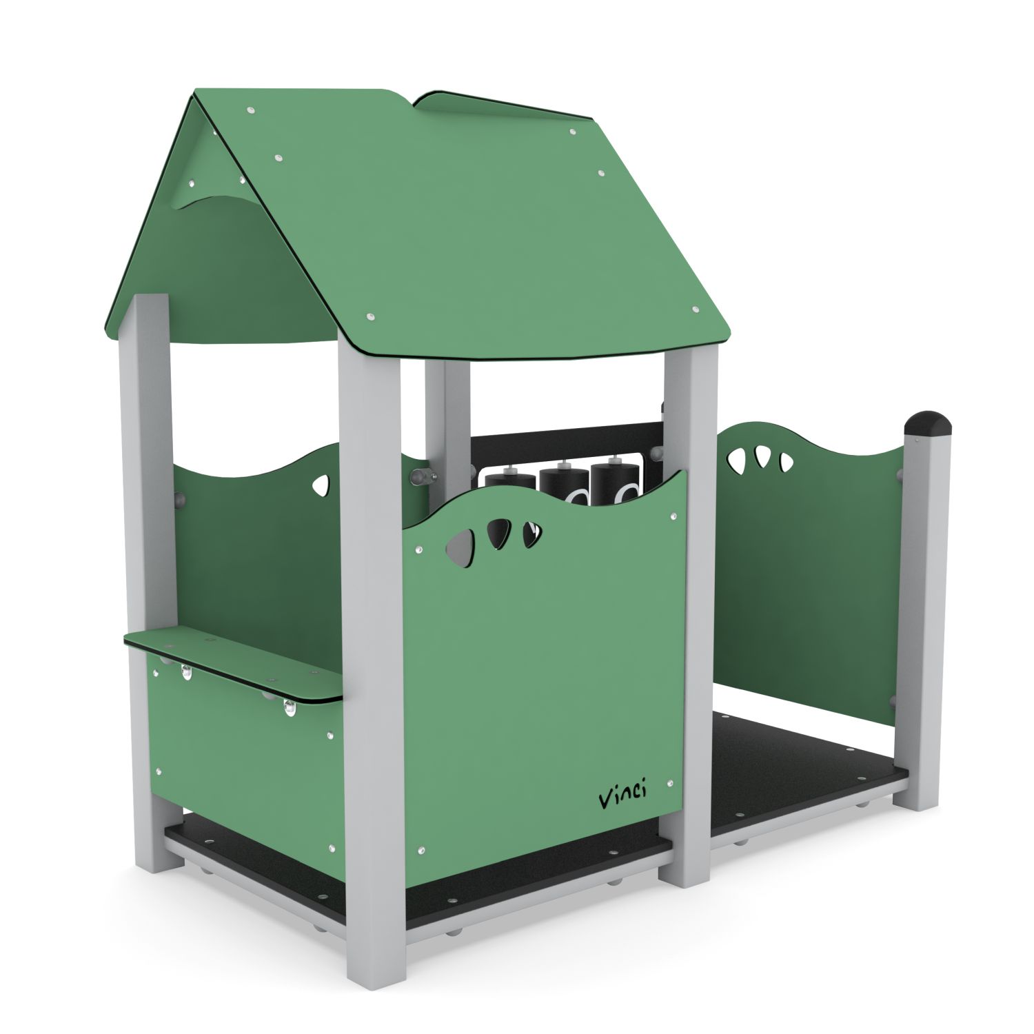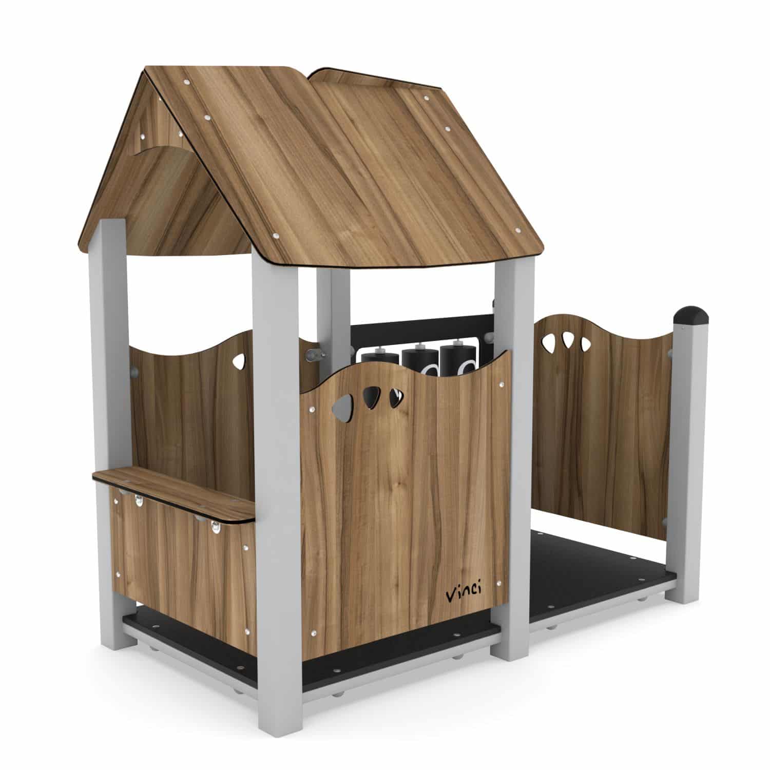Voor speeltuinen met een meer natuurlijke uitstraling kunt u deze toestellen ook in HPL versie krijgen met bv groene of houtnerf panelen. Dit speelhuis is gemakkelijk en snel zelf te plaatsen.