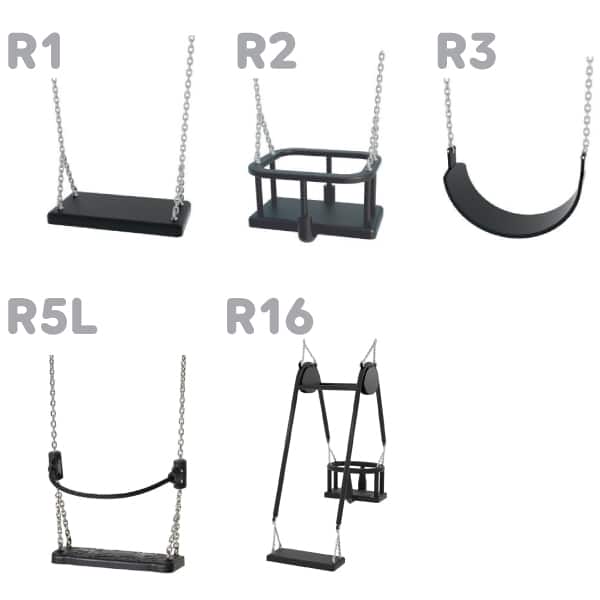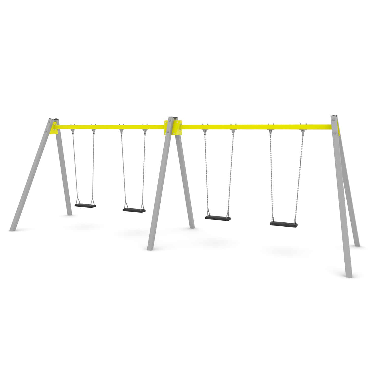 Strak vormgegeven Viervoudige schommel waarbij optioneel voor andere zitjes gekozen kan worden.
