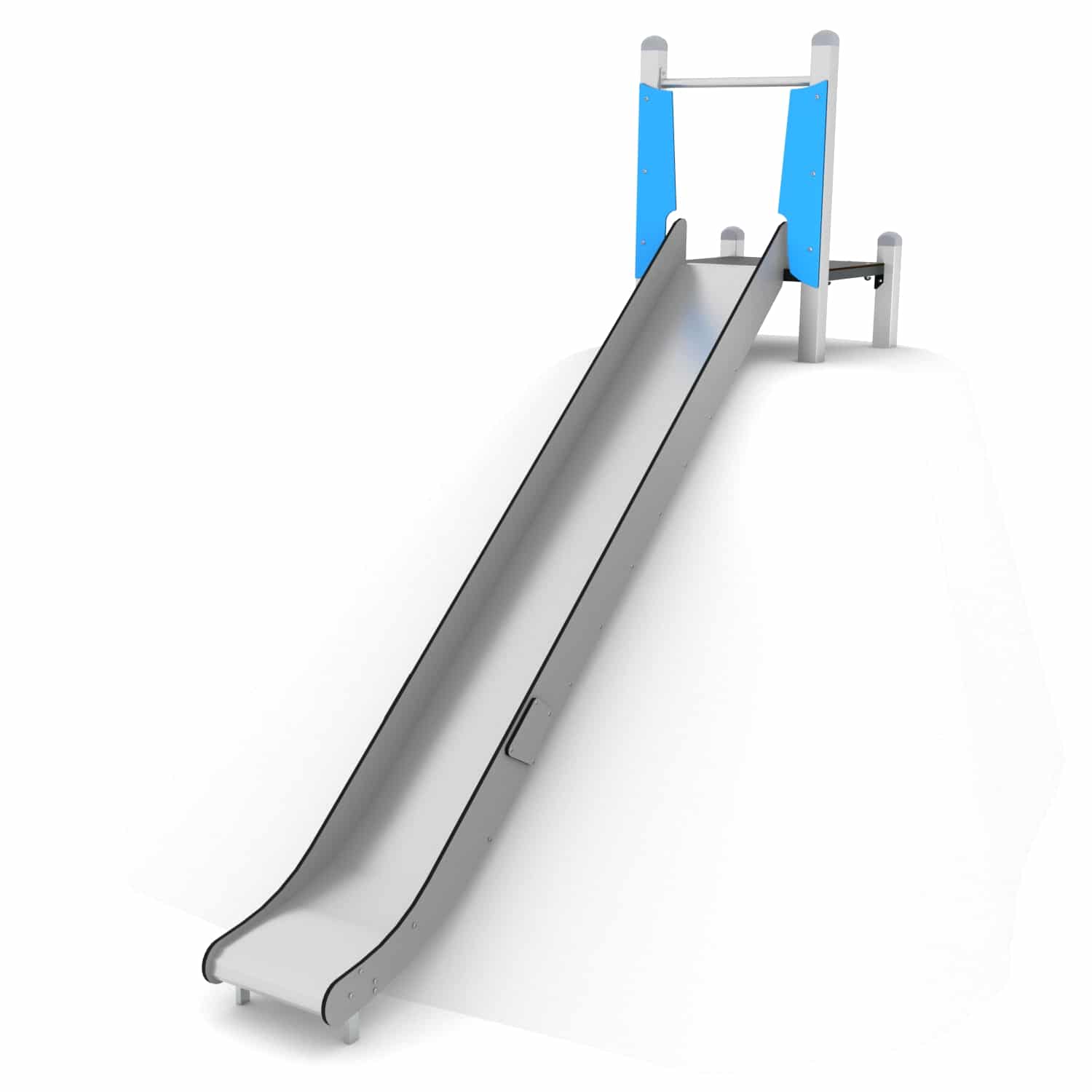 Glij van de heuvel af op de taludglijbaan. De glijbaan is uitgevoerd met een oersterk RVS glijgedeelte en kan in verschillende kleuren en afmetingen geleverd worden.