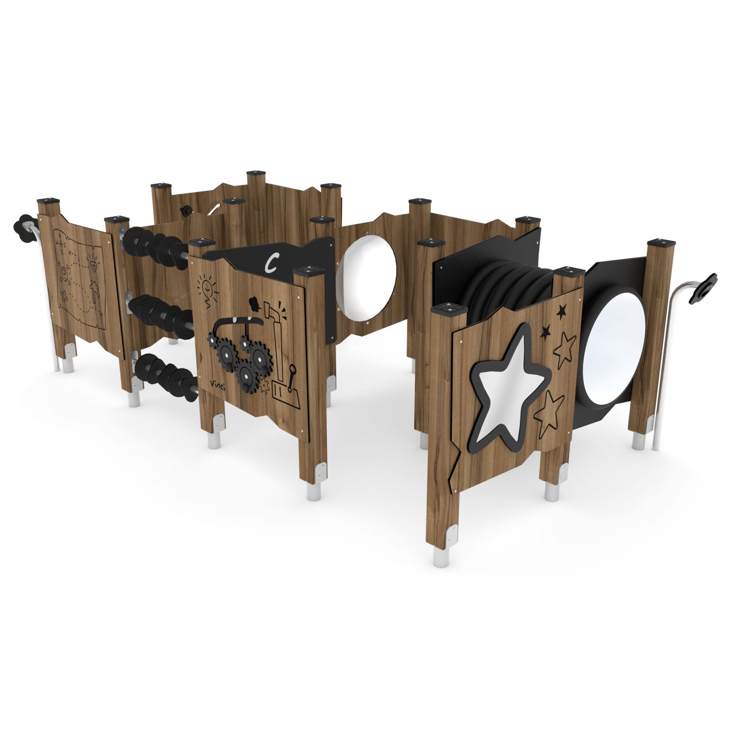 De Wooden-serie is voor zowel jongere als oudere kinderen een eindeloze bron van fantasie en inspiratie waar ze veel plezier aan hebben. Het milieuvriendelijke hout in de WOODEN series stimuleert de uitgebreide fysieke ontwikkeling en maakt het ook mogelijk dat grotere groepen kinderen samen kunnen spelen. Hierdoor leren kinderen relaties ontwikkelen met anderen en hoe ze in een team samen kunnen werken. Verschillende educatieve panelen die de zintuigen prikkelen, gecombineerd met bewegende onderdelen zorgen voor veel plezier bij de kinderen en hebben op hen een grote aantrekkingskracht.