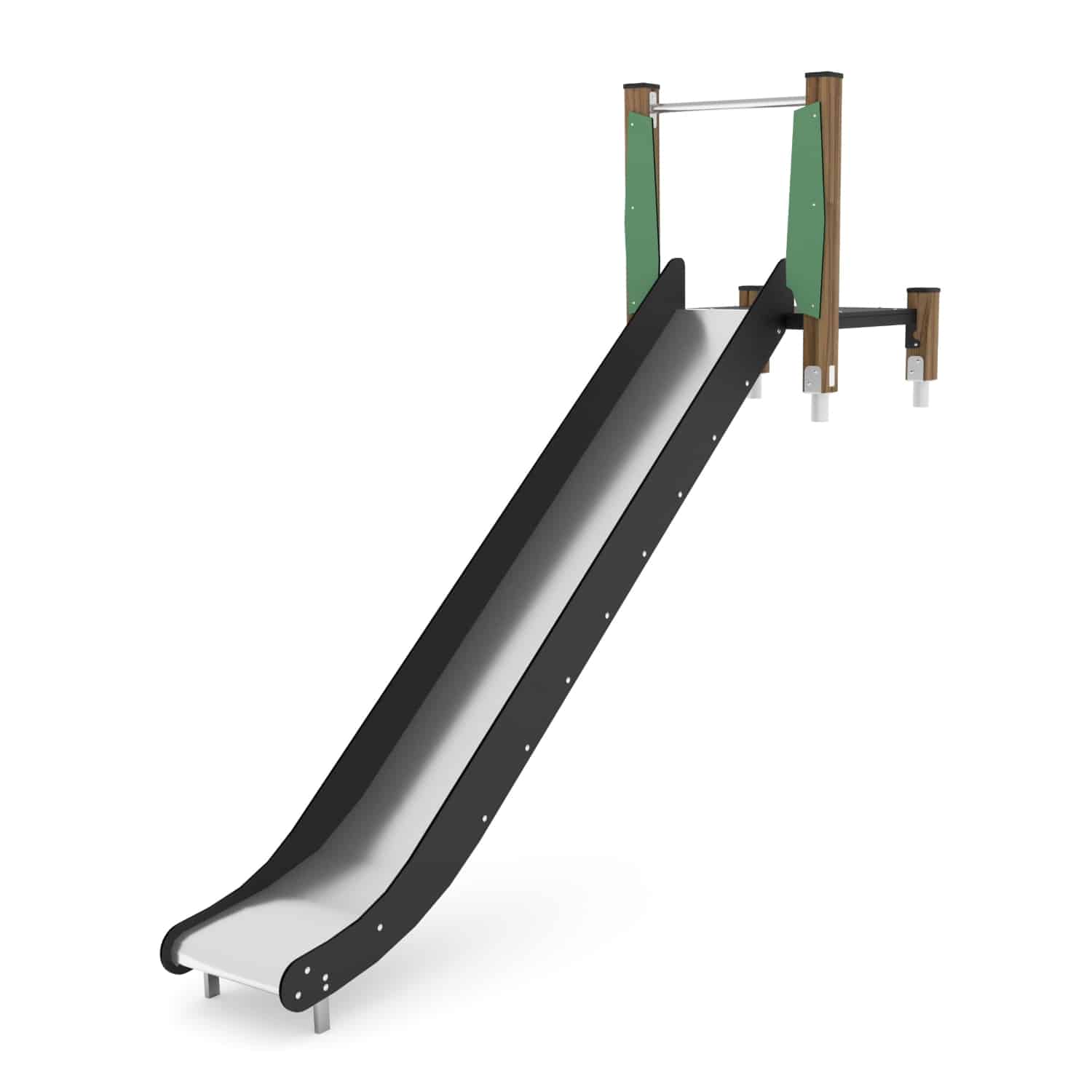 Glij van de heuvel af op de taludglijbaan. De glijbaan is uitgevoerd met een oersterk RVS glijgedeelte en kan in verschillende kleurcombinaties en afmetingen geleverd worden.