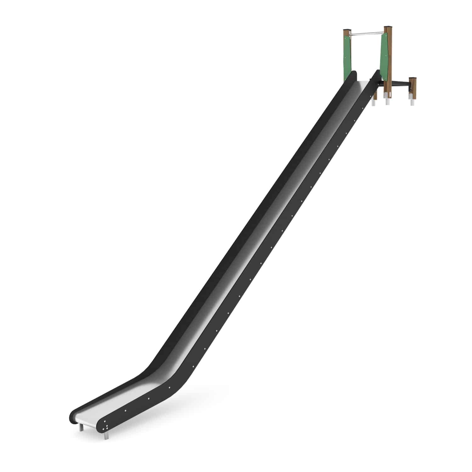 Glij van de heuvel af op de taludglijbaan. De glijbaan is uitgevoerd met een oersterk RVS glijgedeelte en kan in verschillende kleurcombinaties en afmetingen geleverd worden.