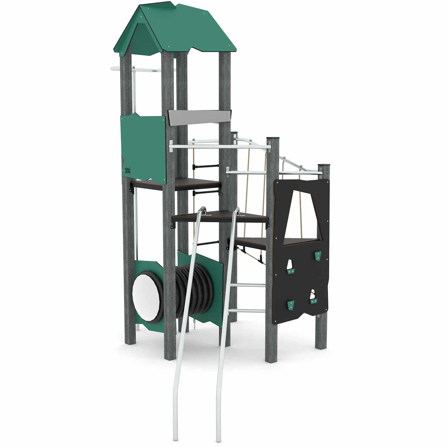 De Recycled Serie. Duurzaam en circulair; de basis van deze toestellen zijn 100% ge-upcycled kunststof staanders – gemaakt uit kunststof folie’s en textiel afval restanten.  Al het plaatwerk bestaat uit 100% ge-upcycled Oceaan kunststof afval zoals opgeviste netten en andere plastics. Het eind resultaat van deze toestellen mag er zeker zijn! Prachtige duurzame toestellen die, door hun uitstraling zeer goed in een natuurlijke omgeving passen. De levensduur van deze speeltuigen is uiteindelijk eigenlijk onbeperkt… Als u na jarenlang speelplezier er op uit gespeelt bent,  gaan ze gewoon weer opnieuw het recycleproces in en kunnen ze weer als nieuwe toestellen terug op de speelplek komen.