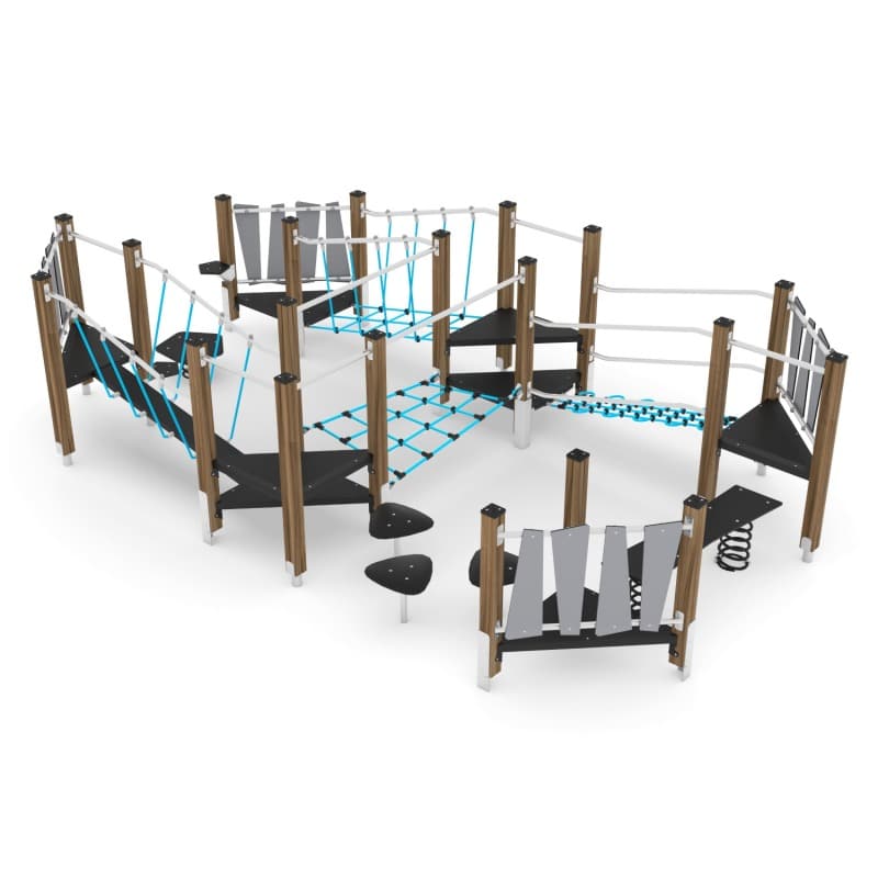 Een enorm divers speelparcours met de nodige motorische uitdaging voor kinderen.  Bestaande uit diverse evenwichtsbruggen, stapplateaus en wiebelplaten met een veer eronder. Een ware hit voor de onderbouw op het schoolplein!