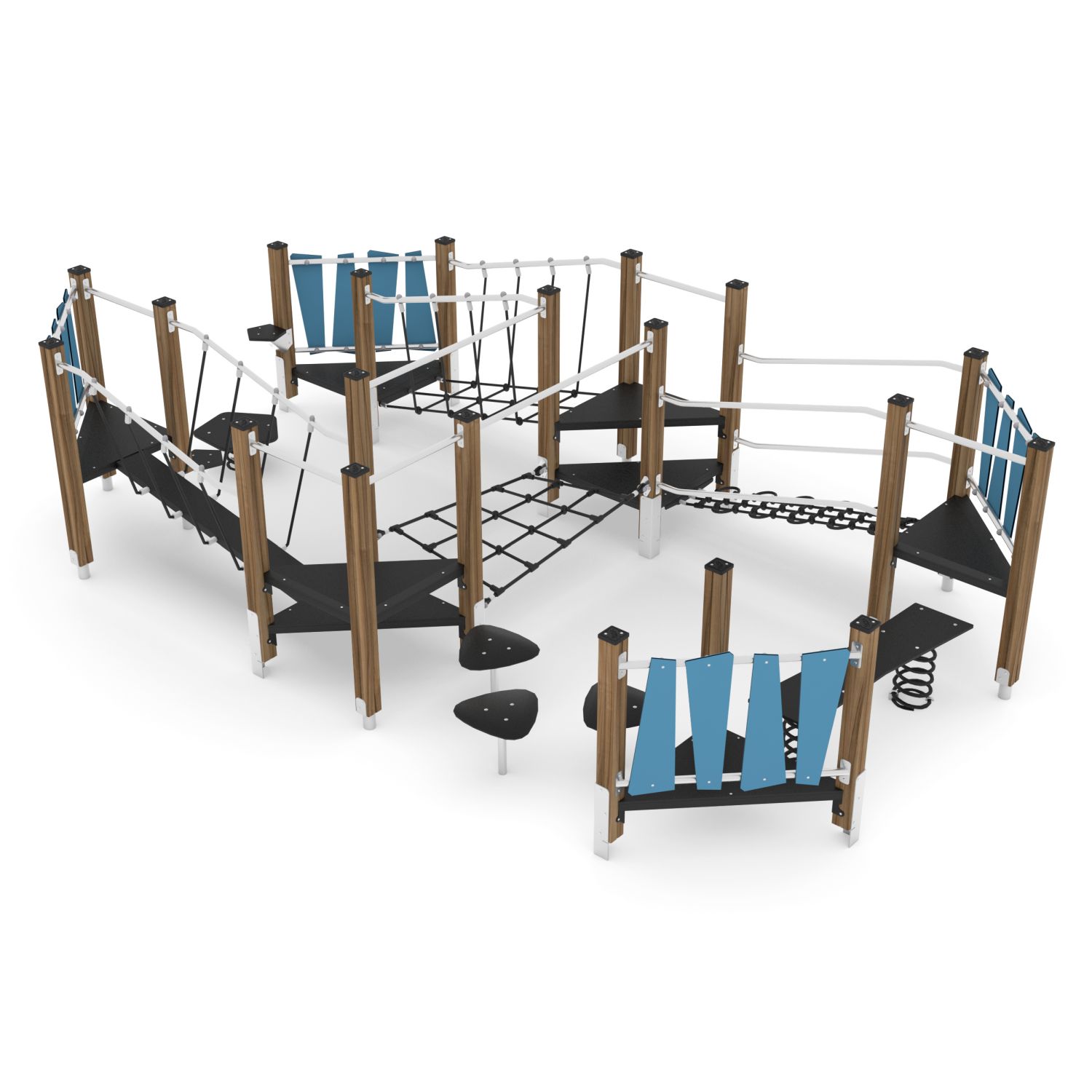 Een enorm divers speelparcours met de nodige motorische uitdaging voor kinderen. Bestaande uit diverse evenwichtsbruggen, stapplateaus en wiebelplaten met een veer eronder. Een ware hit voor de onderbouw op het schoolplein!