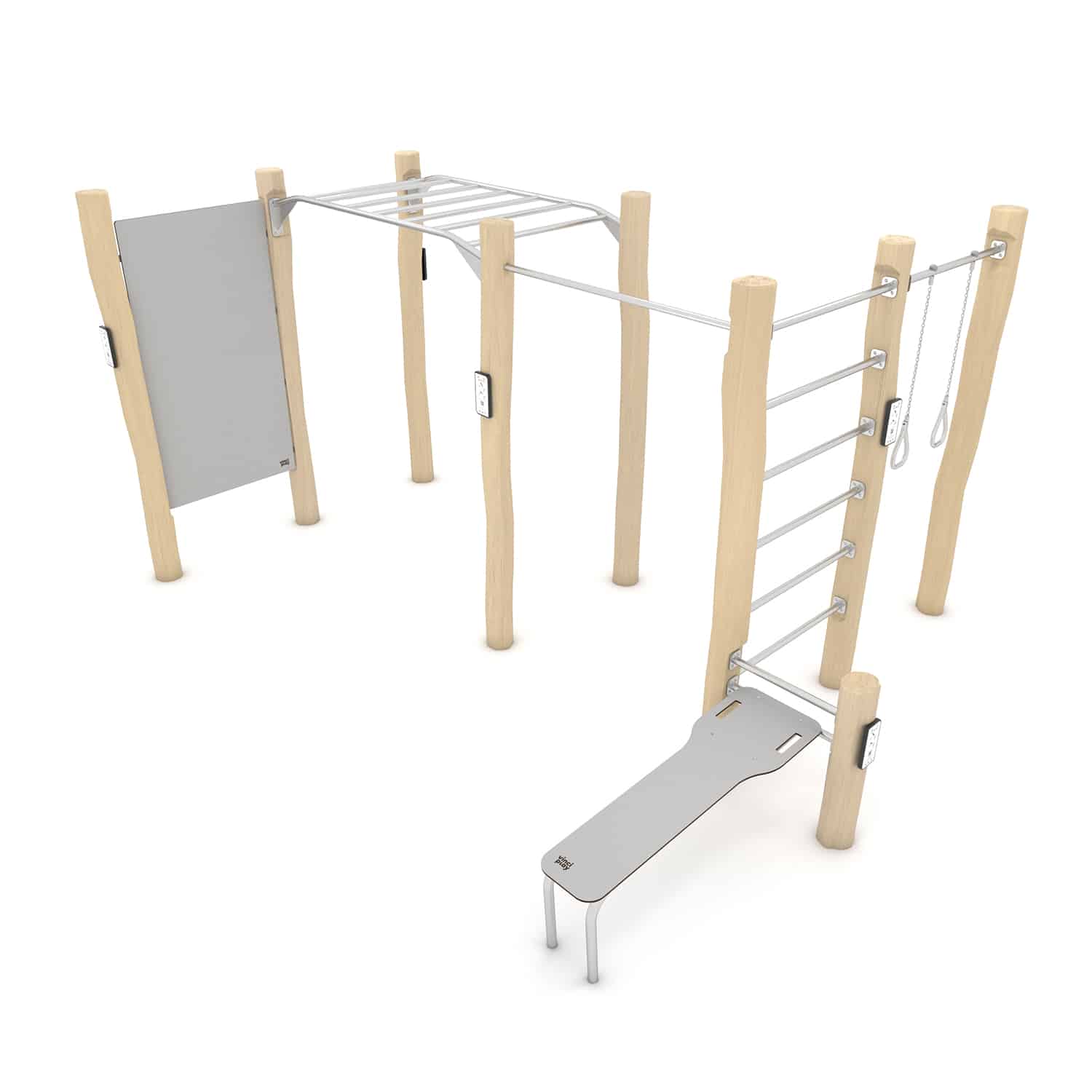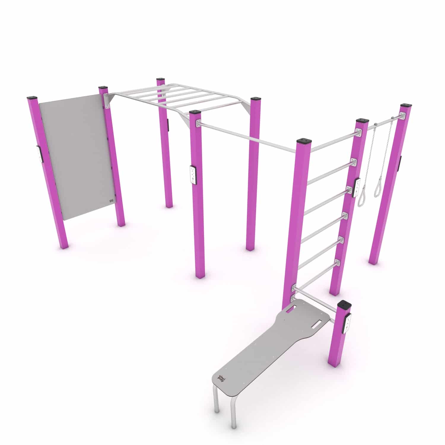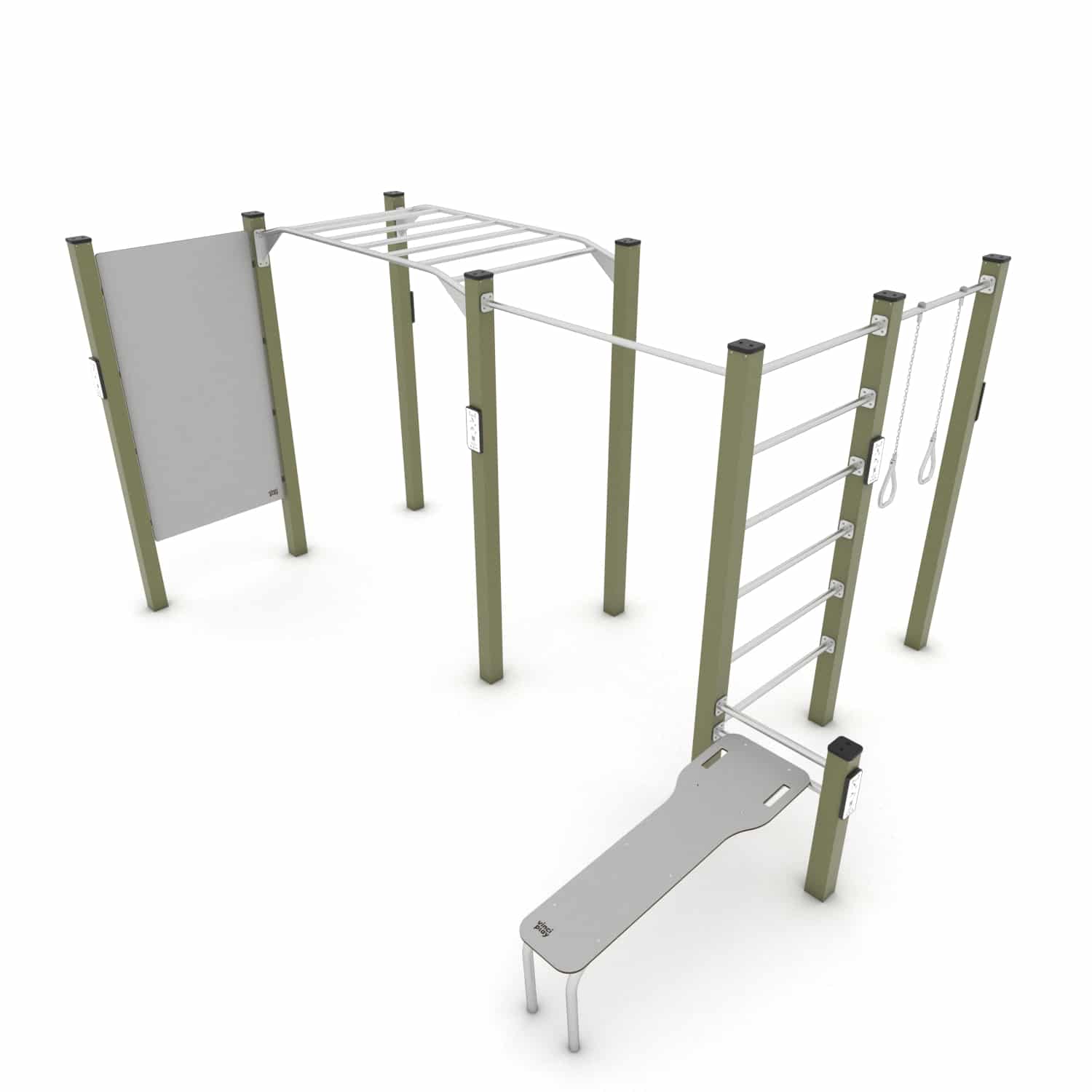Dit Calisthenics circuit bestaat uit meerdere elementen en is daarmee een fantastische workout combinatie voor de buitenruimte. Outdoor trainen is in opmars en daarvoor zijn meestal geen geavanceerde sporttoestellen nodig. Omdat samensport leuker en leerzamer is creëer je met ons Workout assortiment de ideale outdoor gym op maar een paar vierkantemeter met oneindig veel mogelijkheden. De transparante constructie heeft een robuust stalen frame dat is verzinkt en voorzien van een hoogwaardige poedercoating. Train met je eigen lichaamsgewicht, verleg je grenzen en maak gebruik van de online instructies die via een QR code beschikbaar zijn.