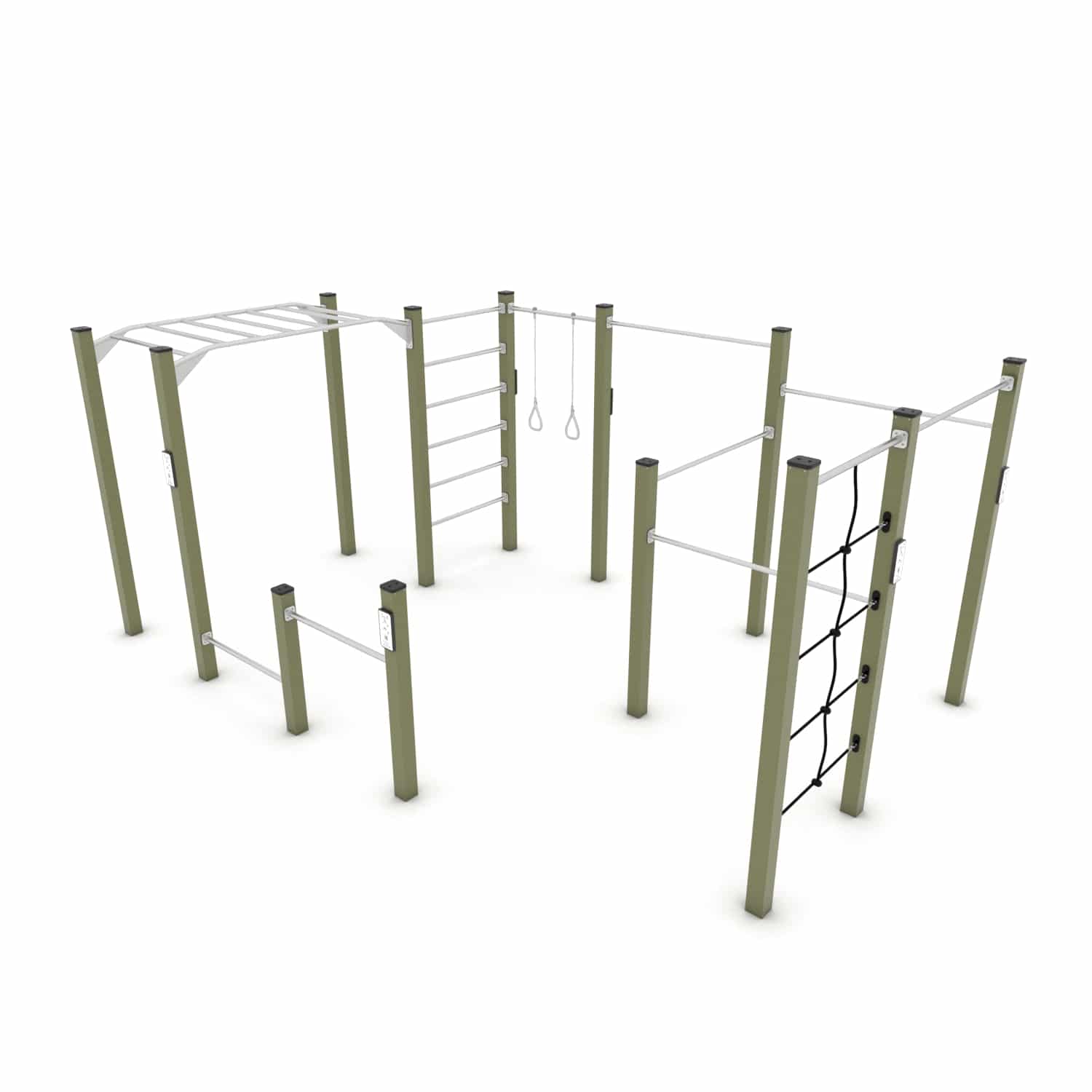 Dit Calisthenics circuit bestaat uit meerdere elementen en is daarmee een fantastische workout combinatie voor de buitenruimte. Outdoor trainen is in opmars en daarvoor zijn meestal geen geavanceerde sporttoestellen nodig. Omdat samensport leuker en leerzamer is creëer je met ons Workout assortiment de ideale outdoor gym op maar een paar vierkantemeter met oneindig veel mogelijkheden. De transparante constructie heeft een robuust stalen frame dat is verzinkt en voorzien van een hoogwaardige poedercoating. Train met je eigen lichaamsgewicht, verleg je grenzen en maak gebruik van de online instructies die via een QR code beschikbaar zijn.