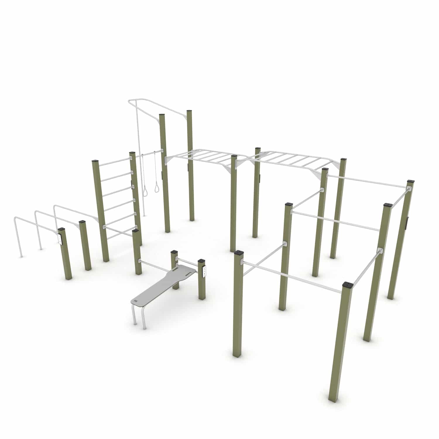 Dit Calisthenics circuit bestaat uit meerdere elementen en is daarmee een fantastische workout combinatie voor de buitenruimte. Outdoor trainen is in opmars en daarvoor zijn meestal geen geavanceerde sporttoestellen nodig. Omdat samensport leuker en leerzamer is creëer je met ons Workout assortiment de ideale outdoor gym op maar een paar vierkantemeter met oneindig veel mogelijkheden. De transparante constructie heeft een robuust stalen frame dat is verzinkt en voorzien van een hoogwaardige poedercoating. Train met je eigen lichaamsgewicht, verleg je grenzen en maak gebruik van de online instructies die via een QR code beschikbaar zijn.